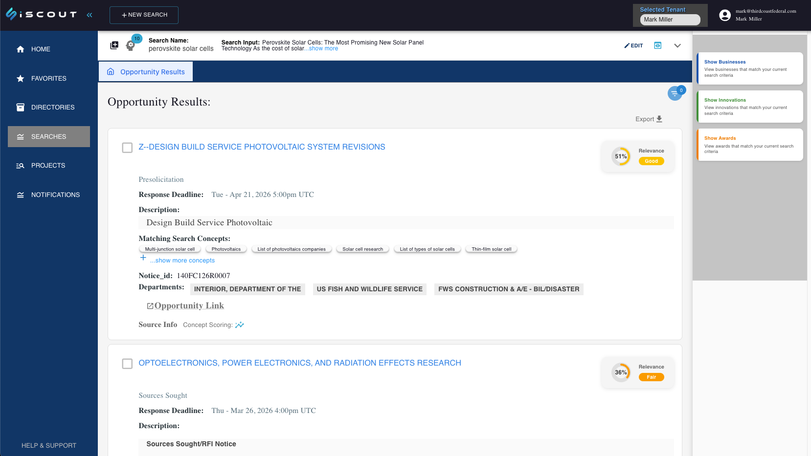 Find RFPs, RFIs, grants, and awards that truly match your technical strengths and innovation priorities.